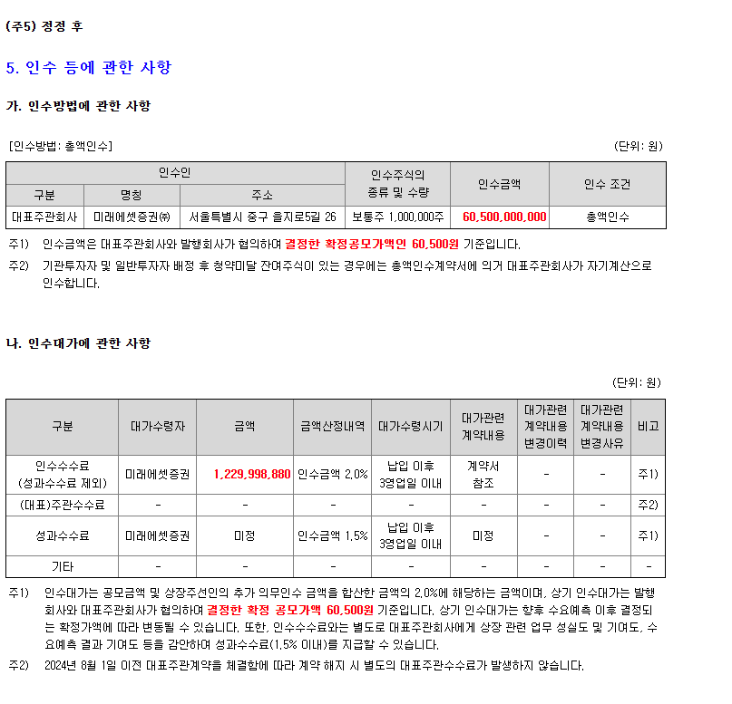| 주관사 | 미래에셋증권 | 단독 주관 |